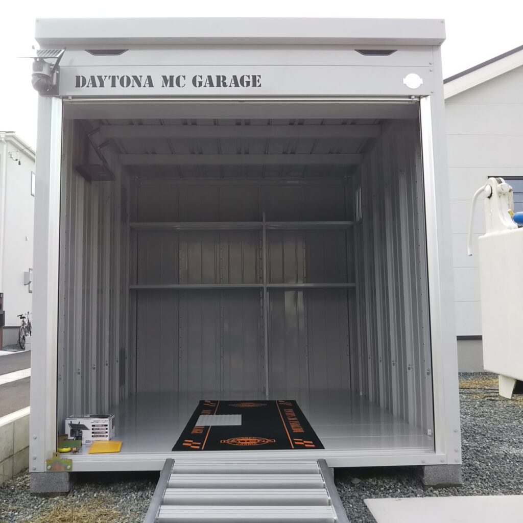 オプション:通気パネル、採光壁、セキュリティカメラ、防犯カメラ取付タッピングベース、ロゴデカール、ヘルメットラック、アルミスロープ